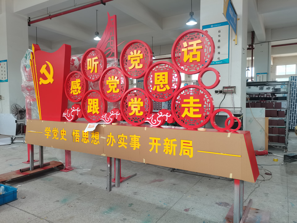 這個(gè)社會(huì)主義核心價(jià)值觀標(biāo)識(shí)牌主體是鍍鋅板切割而成,紅色是我黨新鮮的血液,一顆紅心代表我黨不忘初心牢記使命的永恒課題。整體設(shè)計(jì)非常的大氣。工廠生產(chǎn)實(shí)拍案例圖片如下: