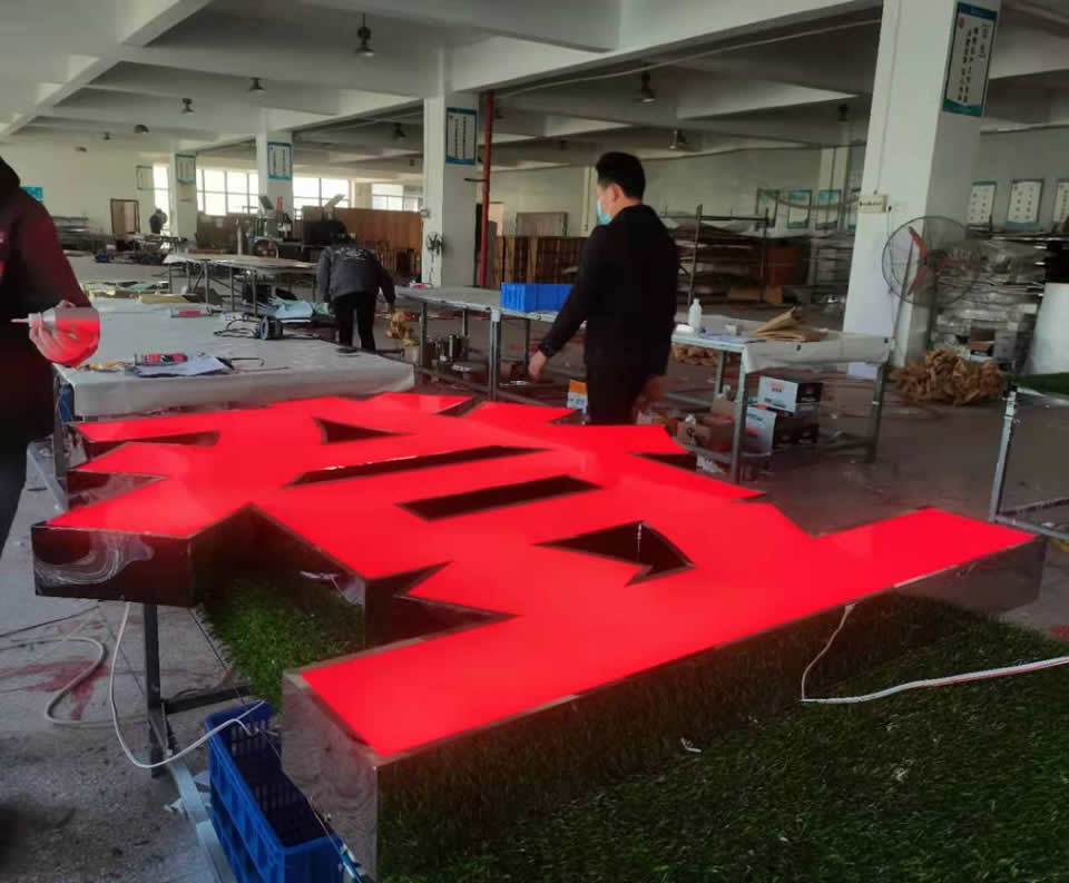 通常,將穿孔在大屋頂上的裸體特征焊接在殼體背面,提高行程間的牢固性。對(duì)于安裝在屋頂上的裸體文字,角鐵不僅加強(qiáng)了裸體筆觸,也是焊接安裝裸體文字的主要支撐點(diǎn)。對(duì)于屋頂上空的發(fā)光文字,我們通常焊接更密集的角熨斗,有助于將裸體角色安裝在屋頂上。